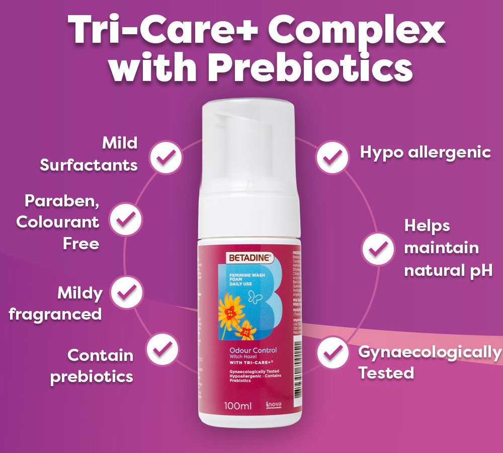 Betadine Feminine Wash Foam Moisturizing Calendula, is exclusively designed for women with dry skin. It has natural extract from the Cofficinalis flower, Calendula, known for its rejuvenating ability that keeps the skin healthy and protected against dryness. It provides optimum moisture to the intimate area while supporting the natural pH and flora