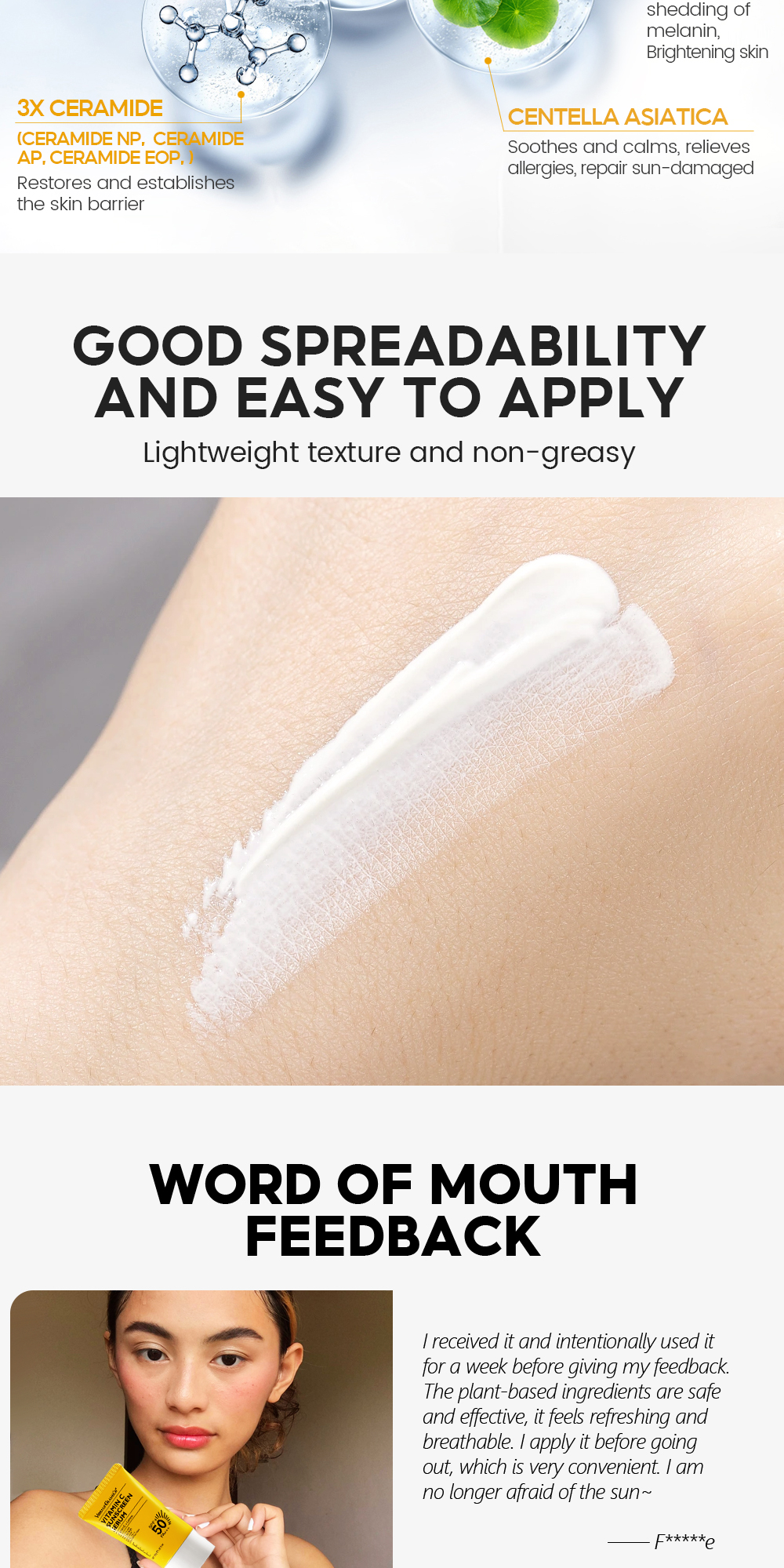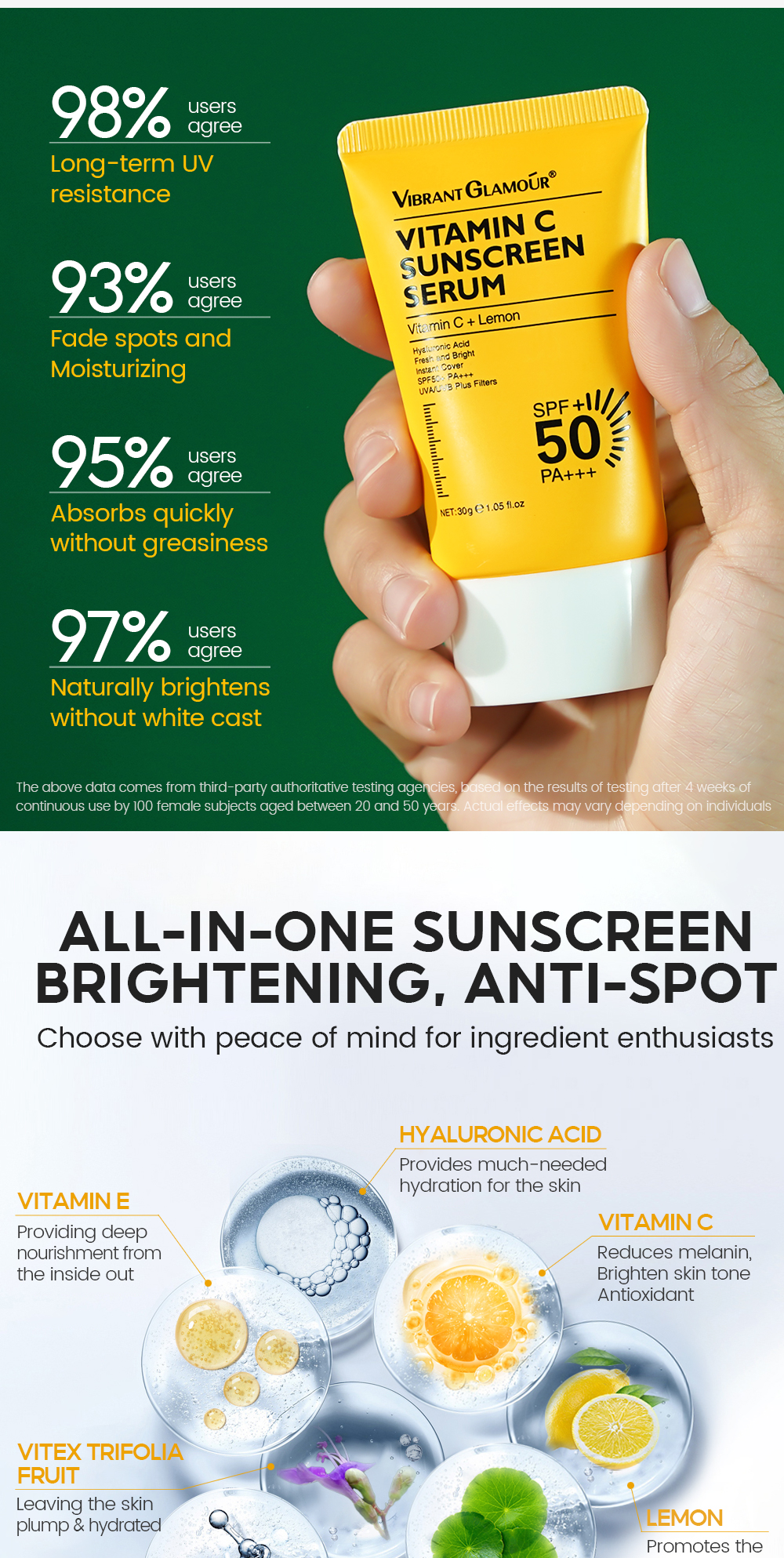 ● Rich in vitamin C and sunscreen technology, effectively repel dark spots